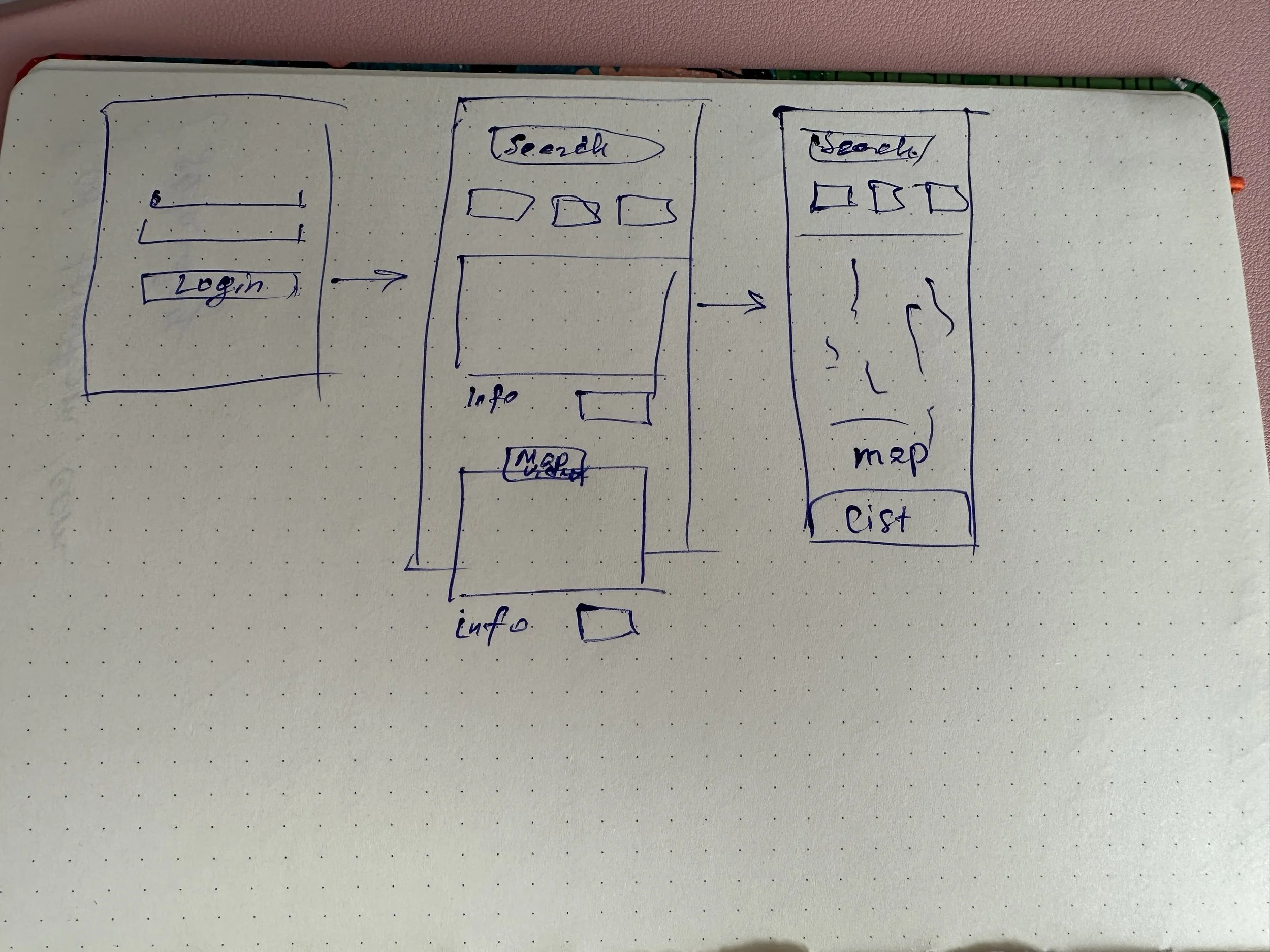 After establishing the visual language and user flows, I created low-fidelity wireframes to map out content hierarchy, screen structure, and key interactions. These helped validate core user journeys like search, listing comparison, map view and contacting owners before investing more time in high-fidelity visuals.